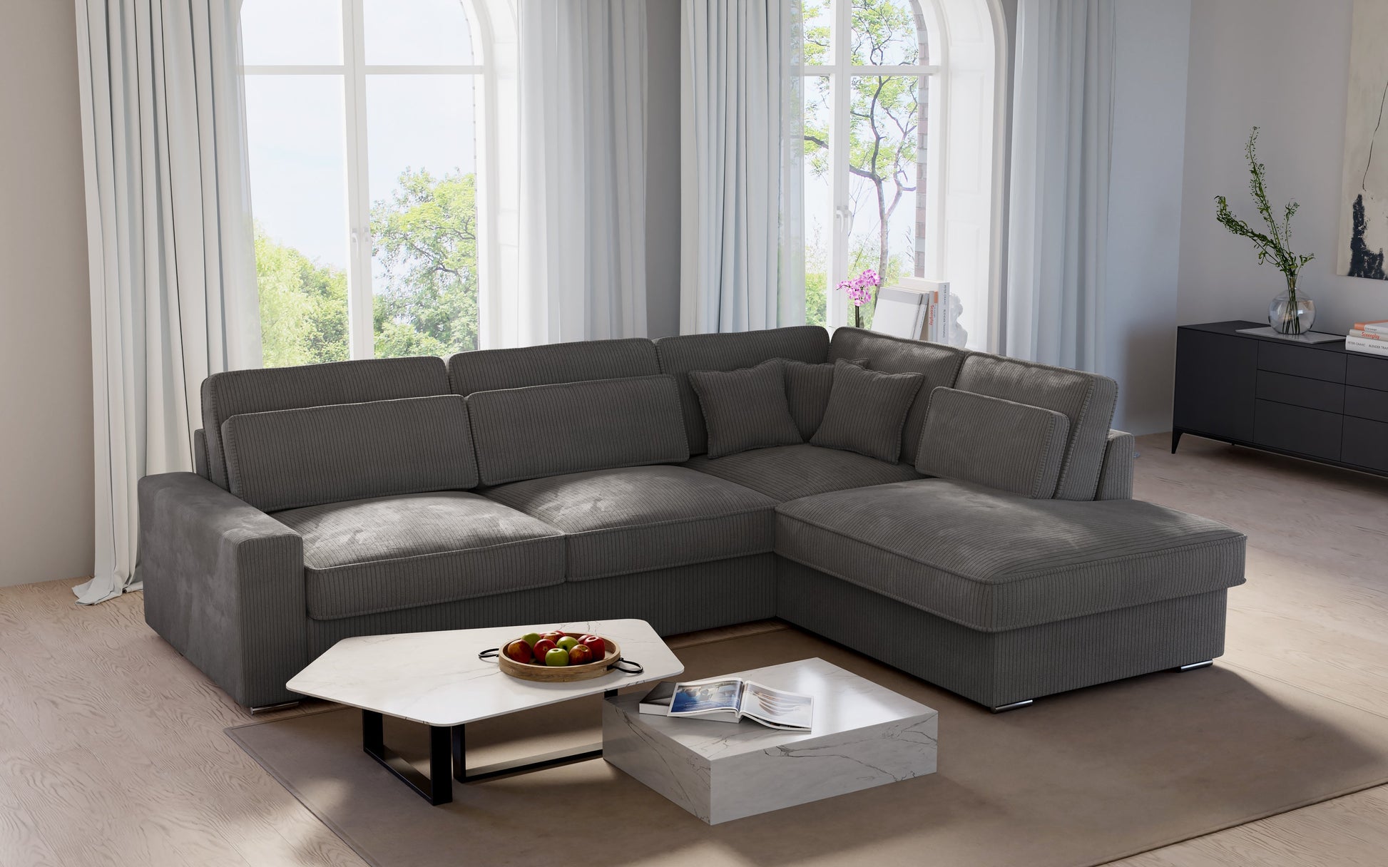 Canapé d'Angle LEXUS Côtelé Gris Anthracite